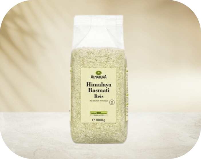Indulge in the pure delight of our Himalaya Basmati Reis. Sourced with care and packaged with sustainability in mind, this aromatic rice is a staple for a balanced and wholesome diet. With its long grains and delicate fragrance, it’s the perfect addition to any meal. Trace its journey from the sun-drenched fields to your kitchen, and join us in our commitment to transparency and environmental responsibility. Embrace the goodness of this premium rice and savor the natural flavors of our planet.